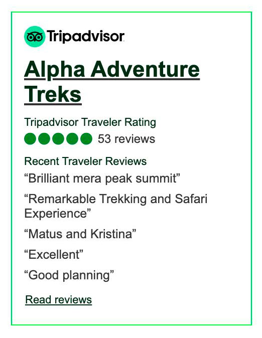 I never had trekking experience in Nepal. I got to know about Alpha Adventure treks from a friend, They prepared me well and provided an experienced guide. Had a great time in the Himalayas.